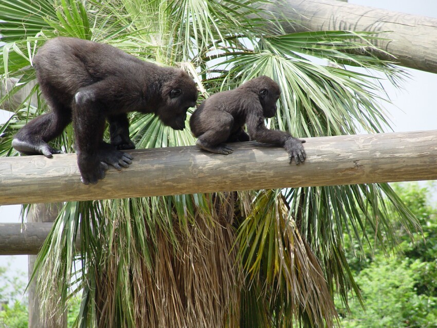 In this series of pictures you will see Harambe up high with Asha, then Nzinga replaces Harambe, Asha goes to the other side of the high pole, Nzinga is afraid Asha is going to fall and grabs her, and Harambe comes to the rescue.