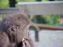 The following pictures are of Nzinga, Harambe & Caesar, Western Lowland Gorillas. Nzinga was born May 22, 1998 and is the son of Mary & Moja. Harambe was born May 27, 1999, and is the son of Kayla & Moja. Caesar was born June 26, 1999 and is the son of Mary & Moja. These pictures were taken September 29, October 13, 20, & 27 and December 8, 2001, at The Gladys Porter Zoo in Brownsville, Texas. .